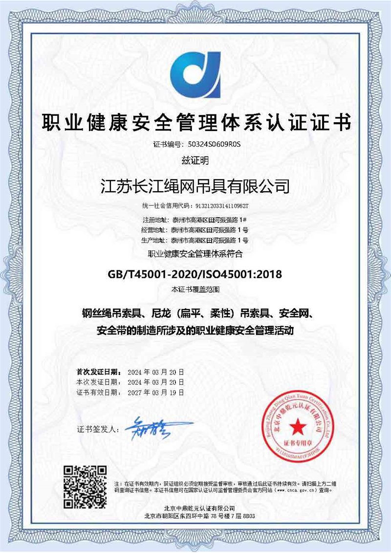 职业健康安全管理体系认证证书